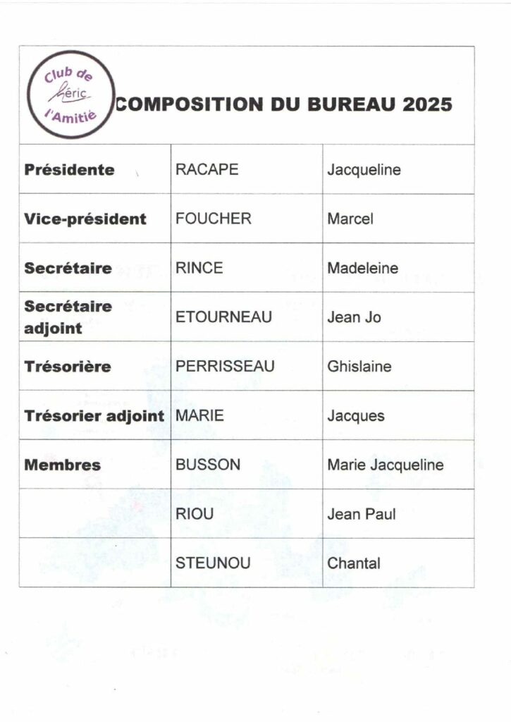 Suite à notre AG , nous nous sommes réunis afin de procéder aux élections des membres du bureau et des commissions pour cette nouvelle année dont voici l’organigramme :