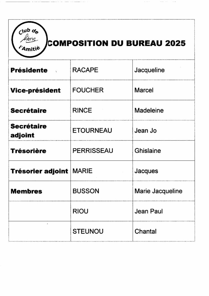 Membres du bureau 2025